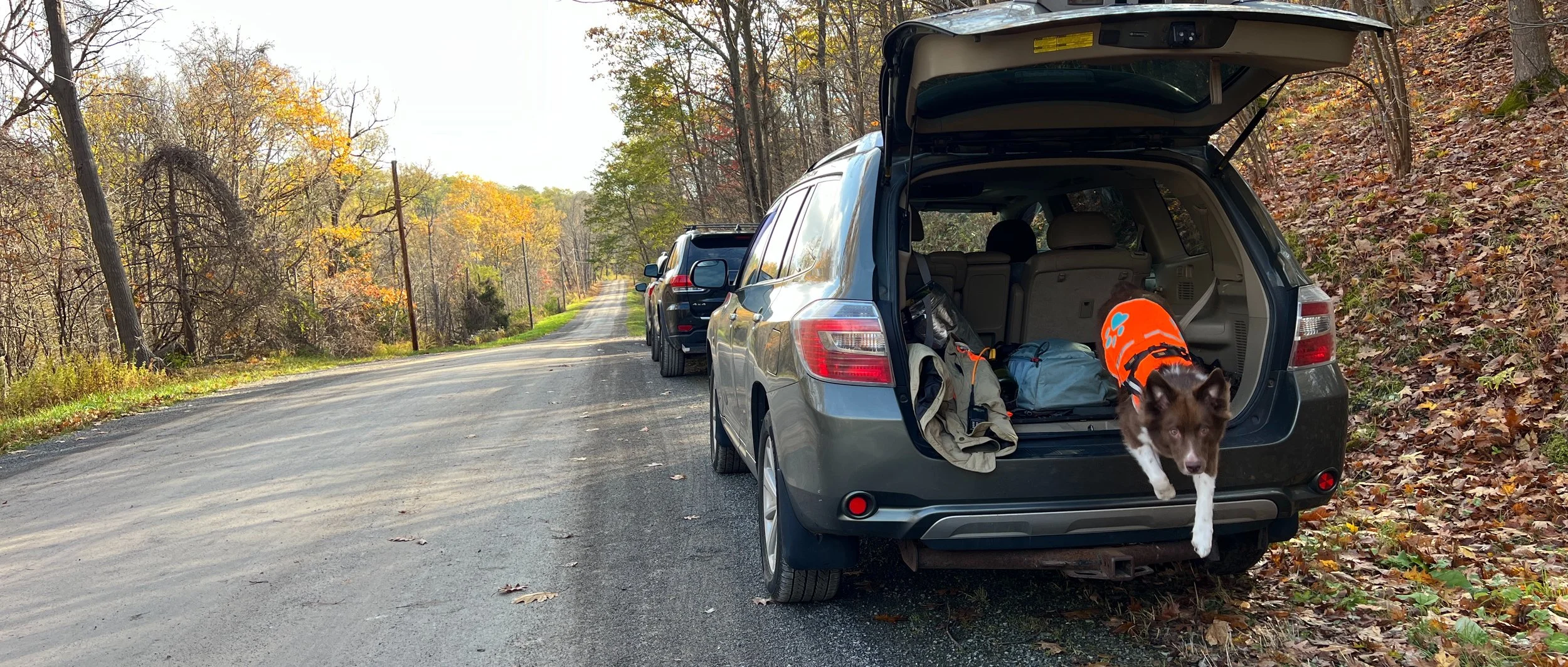 Since its officially hunting season here in New York, I made sure that both Crimson and I had our blaze orange on.